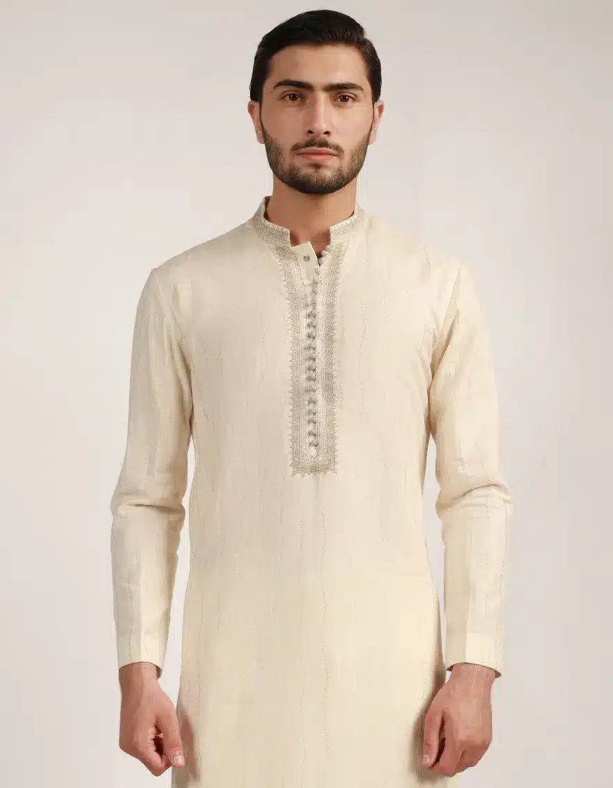 Eid Collection for men consists of a wide range of very decent and best wear traditional kurta shalwar and shalwar kameez designs. Sherwanis are also the part of this series. You will see here the beautiful patterns and designs of formal kurtas, which you can opt for your festive eid or wedding wear for any wedding ceremony, mehndi function, events, and much more.