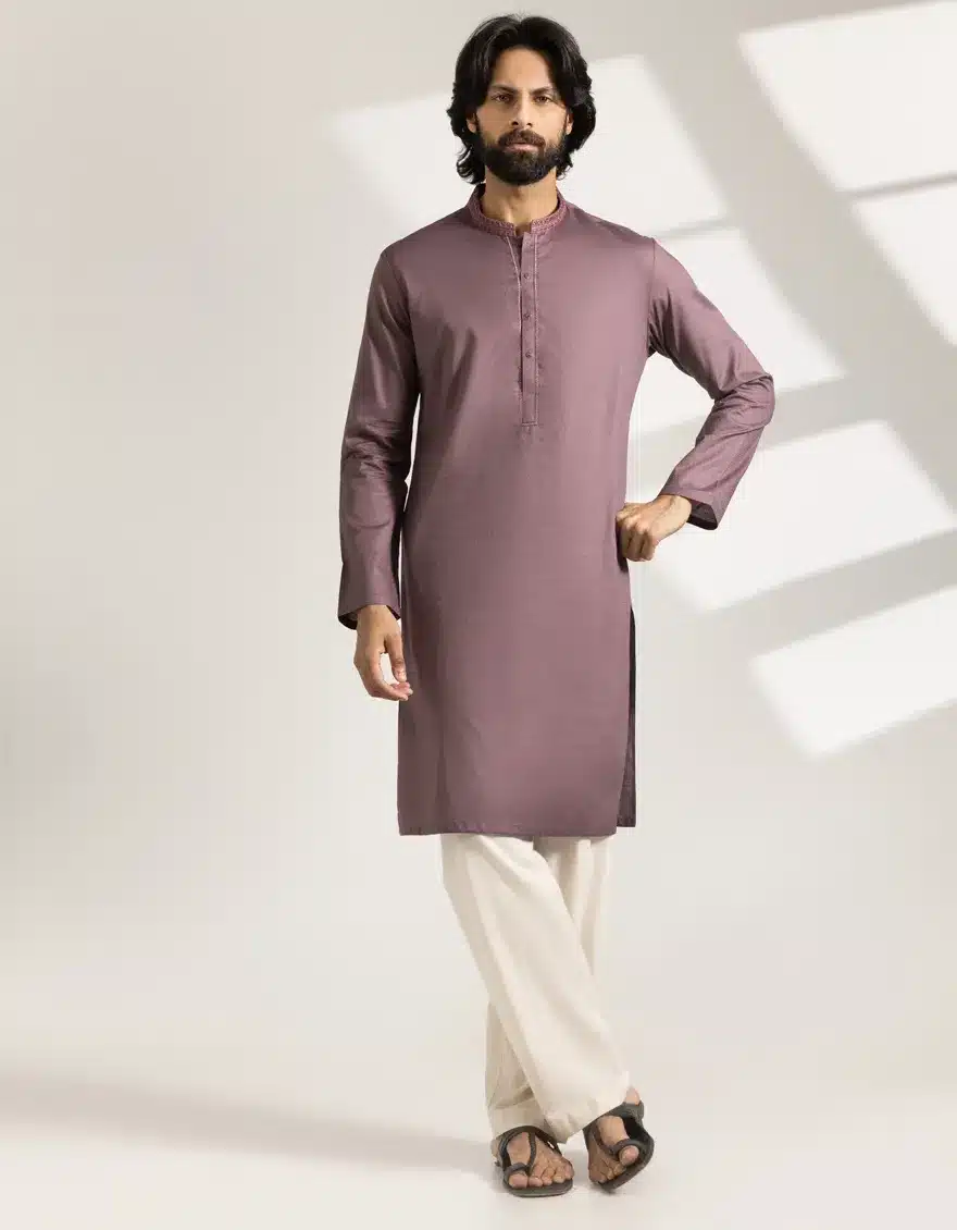 Not every occasion calls for heavy detailing. J. Junaid Jamshed’s collection includes simple plain kurta shalwar sets that offer comfort with an elegant aesthetic — ideal for daytime Eid prayer, relaxed gatherings, or casual festive outings.